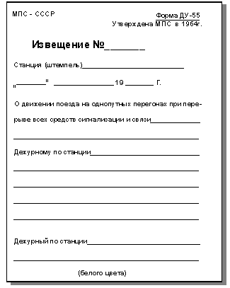 | д) об отправлении поезда | «2-й пост. Поезд № с 1-го пути на Невскую отправился полностью Если отправление поезда производилось с толкачом, то добавляют слова «с толкачом» | |