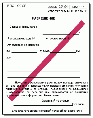 выходного светофора или с путей, не имеющих выходного светофора, разрешение на