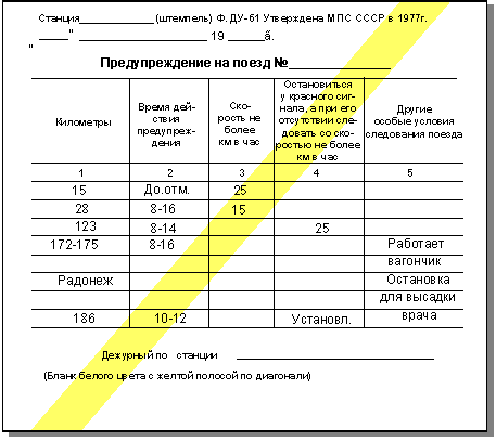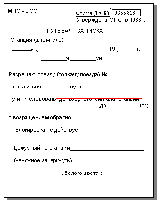 поезда (в графе примечания) должна быть сделана соответствующая отметка: