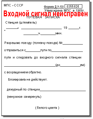 передаваемых машинисту, приказы о приеме и отправлении поездов при запрещающем